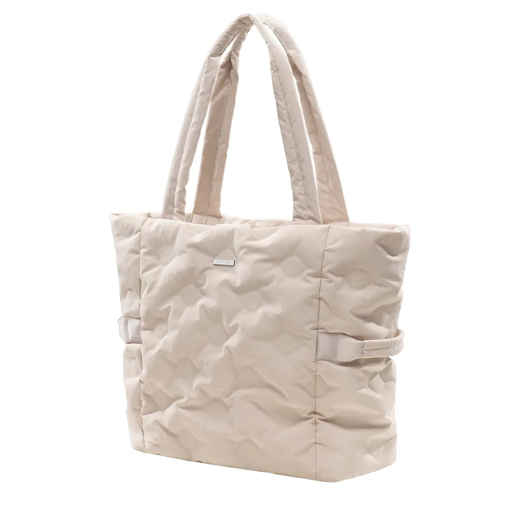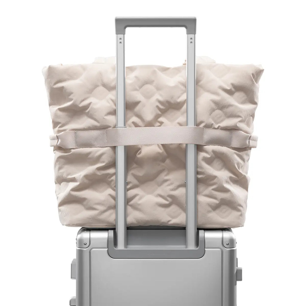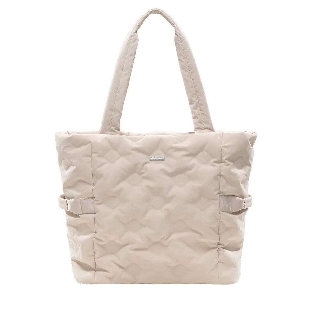 he EVERFUN Lume Tote, a 23L city-ready everyday essential: commute-friendly, polished, practical. Crafted with soft, skin-friendly fabric that feels gentle against your shoulders and hands — its flat bottom fits 15.6" laptops and daily essentials with plenty of room. Dual handles make carrying easy; the lightweight quilted design stays soft all day. Sleek quilting with subtle logos adds a polished touch to your look.