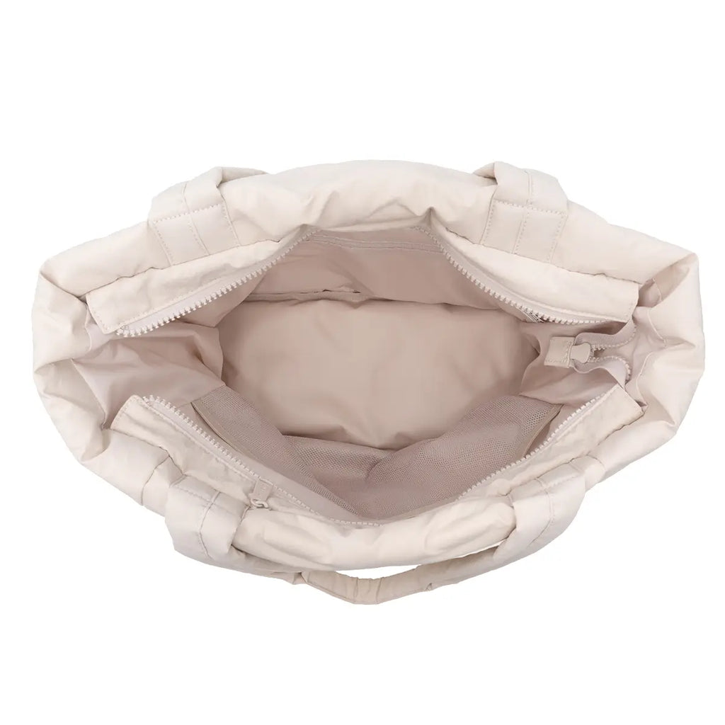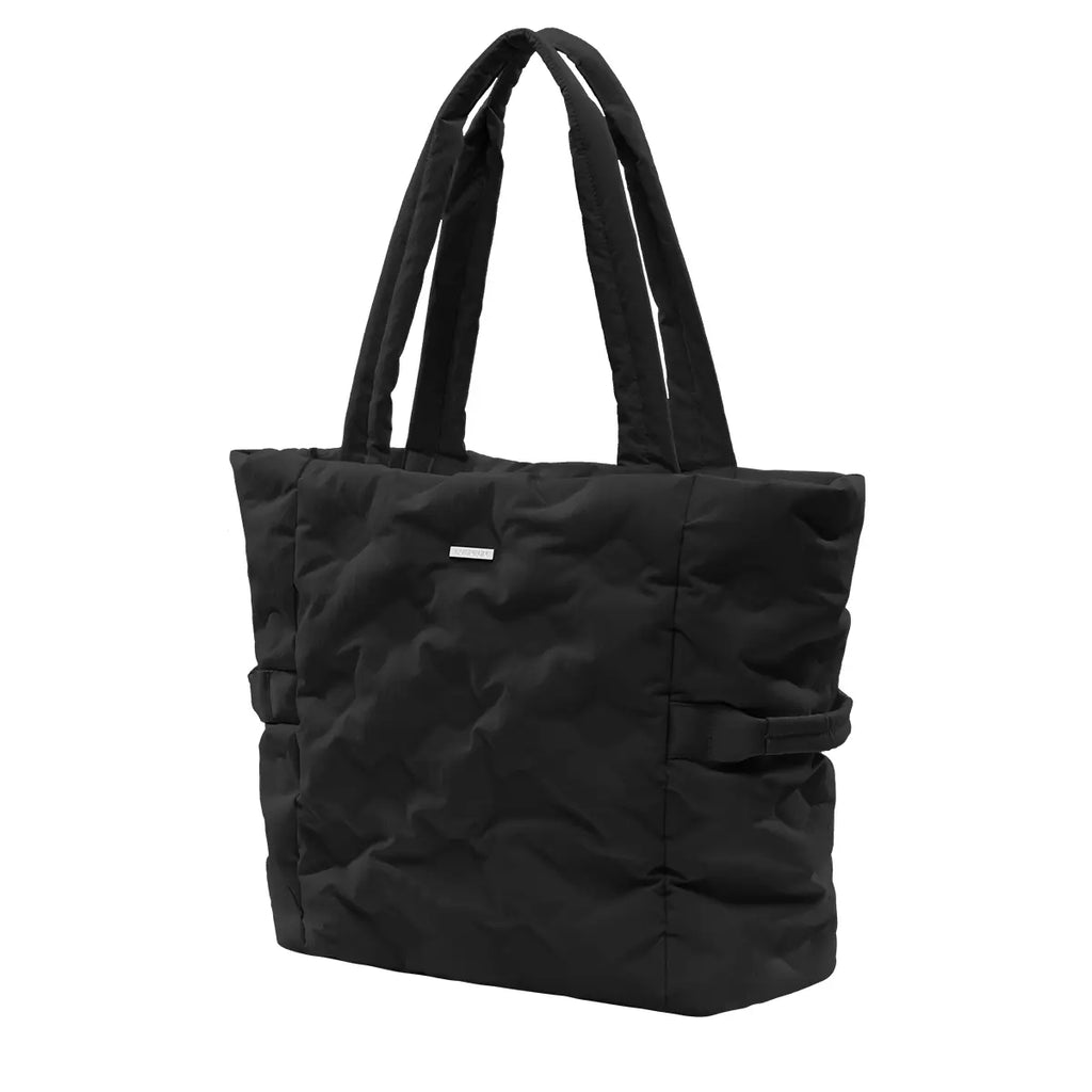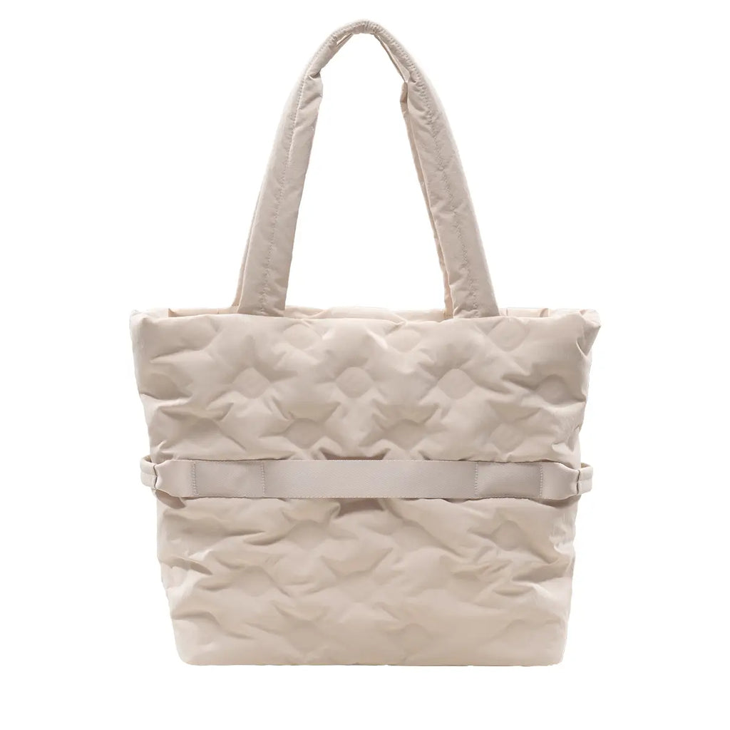 he EVERFUN Lume Tote, a 23L city-ready everyday essential: commute-friendly, polished, practical. Crafted with soft, skin-friendly fabric that feels gentle against your shoulders and hands — its flat bottom fits 15.6" laptops and daily essentials with plenty of room. Dual handles make carrying easy; the lightweight quilted design stays soft all day. Sleek quilting with subtle logos adds a polished touch to your look.